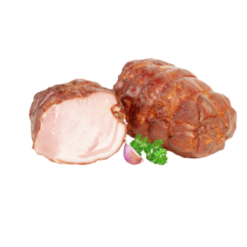 Sastāvdaļas: cūkgaļas šķiņķis, marināde (ūdens, etiķskābe, malti melnie pipari, kadiķogas), ūdens, sāls, stabilizētāji E407a, E450, skābuma regulētāji E451, E331, E262, E330, dzīvnieku olbaltumvielas, SOJAS olbaltumvielu izolāts, KVIEŠU šķiedrvielas, dekstroze, garšas un aromāta pastiprinātāji E621, E635, antioksidanti E316, E301, E300, biezinātājs E415, garšvielas, aromātvielas, hemoglobīns, konservants E250. Gaļas izejvielas izcelsme ES. Enerģētiskā un uzturvērtība: 100g produkta satur 670kJ/161kcal, tauki 10,92g, tostarp piesātinātās taukskābes 3,58g, ogļhidrāti 0,94g, tostarp cukurs 0,16g, olbaltumvielas 14,7g, sāls 1,83g. Uzglabāšanas temperatūra: +2c +6c.