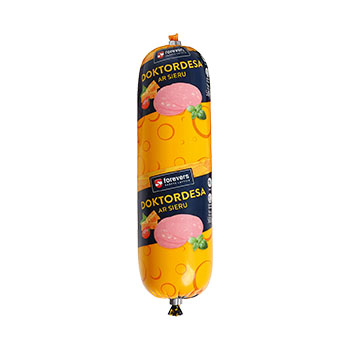 Mehāniski atdalīta cāļa gaļa, ūdens, siers 11% (satur pienu), cāļa gaļa, cūkas ādas, cūkas speķis, kartupeļu ciete, sāls, konservants E250, stabilizētāji Е407, Е425, E451, garšvielu ekstrakti, garšas pastiprinātājs E621, antioksidants E316. Produkts var saturēt sojas un sinepju daļiņas. Mehāniski atdalīta cāļu gaļas, cāļa gaļas, cūku ādas un speķa izcelsme ES.
