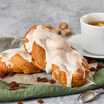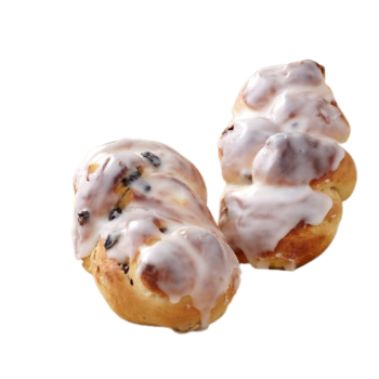 Sastāvdaļas : mīkla (KVIEŠU milti, ūdens, margarīns (augu tauki (palmu, kokosa), ūdens, rapšu eļļa, emulgators E471, skābuma regulētājs E330, dabīgs aromatizētājs, pārtikas krāsviela E160a ), cukurs, raugs, pārtikas sāls), cukura glazūra (cukurs, glikozes sīrups), rozīnes, OLA, ūdens. 100 g produkta satur : enerģētiskā vērtība: 1823 KJ/434 kcal, tauki 11 g, tostarp piesāt.taukskābes 5,6 g, ogļhidrāti 74,3 g, tostarp cukurs 42 g, šķiedrvielas 2,2 g, olbaltumvielas 7 g, sāls 0,6 g. Uzglab.temp.: istabas temperatūrā. Izlietot līdz: norādīts uz iepakojuma. Ražotājs: SIA Diāna Bistro, Andreja iela 5, Ventspils.