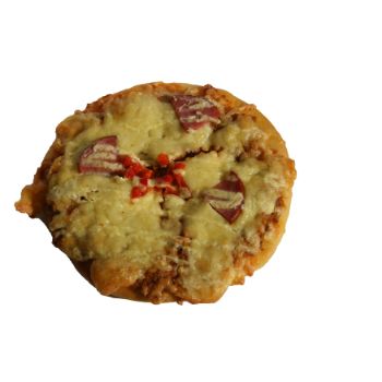 Sastāvdaļas: mīkla (KVIEŠU milti, ūdens, augu eļļa, cukurs, raugs presētais, pārtikas sāls), cūkgaļa, burkāni, majonēze (rapšu eļļa, ūdens, OLU pulveris , VĀJPIENA pulveris, cukurs, modificēta ciete, sāls, skābuma regulētāji (etiķskābe, pienskābe), biezinātāji (guāra sveķi, ksantāna sveķi), konservanti (kālija sorbāts, nātrija benzoāts), aromatizētājs, krāsviela (beta karotīns)), siera izstrādājums (pasterizēts PIENS, augu tauki (palmu)24%, pārtikas sāls, konservants E252, siera ieraugs, renins, pārtikas krāsviela-beta karotīns), kečups (dzeramais ūdens, tomātu pasta (18%), modificēta kartupeļu ciete, cukurs, pārtikas sāls, skābuma regulētājs (etiķskābe), konservanti: E211,8202, stabilizētājs :8412, tomātu aromatizētājs, saldinātājs: saharīns;antioksidants (askorbīnskābe)), desa salami (gaļa 76% (cūkgaļa 24%, cūku speķis 22%, liellopa gaļa 15%, cāļu gaļa 15%) ūdens, SOJAS olbaltumvielas, sāls, konservants E250 kartupeļu ciete, PIENA sūkalas, skābuma regulētājs E575, cūku olbaltumvielas, stabilizētājs E451, cūku hemoglobīns, dekstroze, krāsviela E120, aromatizētājs, garšas pastiprinātājs E621, antioksidants E316), marinēta paprika (sarkanās paprikas strēmeles, ūdens, etiķis, cukurs, sāls, stabilizators:E509, saldinātājs :E954), garšviela cūkgaļai (sāls (49%), sīpoli drupināti, melnie pipari, saldā paprika, garšas pastiprinātājs nātrija glutamāts, ķiploki, asā paprika, cukurs, ingvers, muskatrieksti, pretsalipes viela E551). 100 g produkta satur : enerģētiskā vērtība: 1181 KJ/283 kcal, tauki 16,1 g, tostarp piesātinātās taukskābes 4,8 g, ogļhidrāti 21,6 g, tostarp cukurs 5 g, šķiedrvielas 1,4 g, olbaltumvielas 11,8 g, sāls 1,1 g. Uzglab.temp.: istabas temperatūrā. Izlietot līdz: norādīts uz iepakojuma. Ražotājs: SIA Diāna Bistro, Andreja iela 5, Ventspils