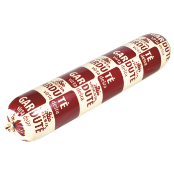 Sastāvdaļas: cūkgaļa (izcelsme — ES) 90%, ūdens, sāls, emulgators E450, antioksidanti (E300, E301), stabilizētājs E407, biezinātājsE425, skābuma regulētāji (E262, E327, E331), garšas un aromāta pastiprinātājs E621, krāsviela E120, konservants E250, aromatizētāji (satur kūpināšanas aromatizētāju), garšvielu ekstrakti. Produktā iespējama šādu alergēnu klātbūtne: LAKTOZE, SOJA, LIPEKLIS, SELERIJAS. Uzglabāšanas temperatūra: 0…+6C. Uzturvērtība 100g: enerģētiskā vērtība 932kJ/223kcal, tauki 19g, tostarp piesātinātās taukskābes 5,7g, ogļhidrāti, <0,5g, tostarp cukuri <0,5g, olbaltumvielas 13g, sāls 2,8g.