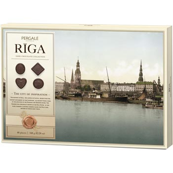 Konfekšu kārba Pergale Rīga ar tumšo šokolādi 348g