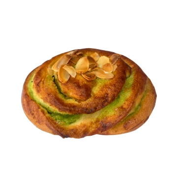 Sastāvdaļas: mīkla (KVIEŠU milti, ūdens, margarīns (dzīvnieku tauki (cūku), augu eļļa (rapšu), ūdens, sāls, emulgatori (rapšu lecitīns, taukskābju mono- un diglicerīdi RSPO SG), skābuma regulētājs (citronskābe), aromatizētājs dabīgs, krāsviela beta-karotīns)), pistāciju pildījums (cukurs, ūdens, aprikožu kauliņu kodoli, modificēta ciete, augu eļļa (palmu, rapšu), glikozes sīrups, sāls, emulgators E471, aromatizētājs, konservants E202, krāsviela E16a, E142, skābuma regulētājs E330), mandeļu skaidiņas, OLA. 100 g produkta satur : enerģētiskā vērtība: 1633,4 KJ/389,7 kcal, tauki 15,6 g, tostarp piesātinātās taukskābes 7,3 g, ogļhidrāti 53,8 g, tostarp cukurs 22,9 g, šķiedrvielas 2,1 g, olbaltumvielas 7 g, sāls 0,7 g. Uzglab.temp.: istabas temperatūrā. Ražotājs: SIA Diāna Bistro, Andreja iela 5, Ventspils, Latvija.