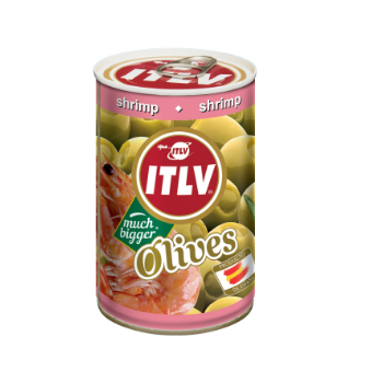 Manzanillas olīves, GARNEĻU pasta 6%(ūdens, GARNELES 10%, biezinātājs- natrija algināts), sāls, garšas pastiprinatajs: natrija glukomats, skabuma regulētājs: citronskābe un PIENSKĀBE. Antioksidāns: askorbīnskābe.