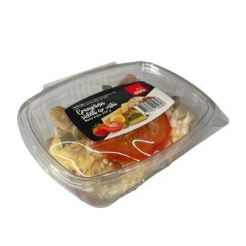 Sastāvdaļas:majonēze(rapšu eļļa, ūdens, OLU pulveris , VĀJPIENA pulveris, cukurs, modificēta ciete, sāls, skābuma reg. (etiķskābe, pienskābe), biezinātāji (guāra sveķi, ksantāna sveķi), konservanti (kālija sorbāts, nātrija benzoāts), aromatizētājs, krāsviela (beta karotīns)), vistas fileja, grauzdiņi(ūdens, RUDZU milti, KVIEŠU milti, pārtikas sāls, maizes raugs, cukurs), SIERA izstrādājums(pasterizēts PIENS,augu tauki(palmu)24%,pārtikas sāls,konservants E252,siera ieraugs,renins,pārtikas krāsviela-beta karotīns), tomāti, marinēti gurķi(gurķi, ūdens, vīna etiķis, sāls, garšvielas (dilles, sīpoli, SINEPJU sēklas, piparu graudiņi), konservants: E211; dabīgs aromatizētājs, saldinātājs: E954), OLA, garšviela vistas gaļai(sāls (53,5%), sīpoli, saldā paprika, ķiploki, karijs (satur kurkumu, SINEPES, koriandru), melnie pipari, garšas pastiprinātājs nātrija glutamāts, cukurs, pretsalipes viela (silīcija dioksīds)).100G prod. satur: enerģ. vērt. 1030KJ/ 249kcal, tauki 18,7g, tostarp piesāt. Taukskābes 2,7g, ogļhidrāti 9,8g , tostarp cukurs 1,3g , šķiervielas 1,2g, olbaltumvielas 10,2g, sāls 1,2g. Uzglab.temp.: +2…+6 C. Izlietot līdz: norādīts uz iepakojuma. Ražotājs: SIA Diāna Bistro, Andreja iela 5, Ventspils, LV-3601.
