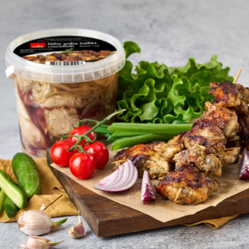 Sastāvs:Vistas šķiņķis, sīpoli, ķiploki, universālā garšviela, cukurs, etiķa esece, malti melnie pipari, ūdens.Uzgl.pi temp.+2+6.Ražotājs SIA Diāna Bistro