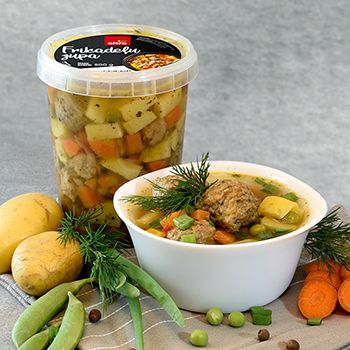Sastāvs:Kartupeļi, c/g maltā gaļa, ūdens, burkāni,sīpoli, dilles, pārtikas sāls, universālā garšviela. Uzglabāt t virs +2- +6. Ražotājs Sia Diāna Bistro.