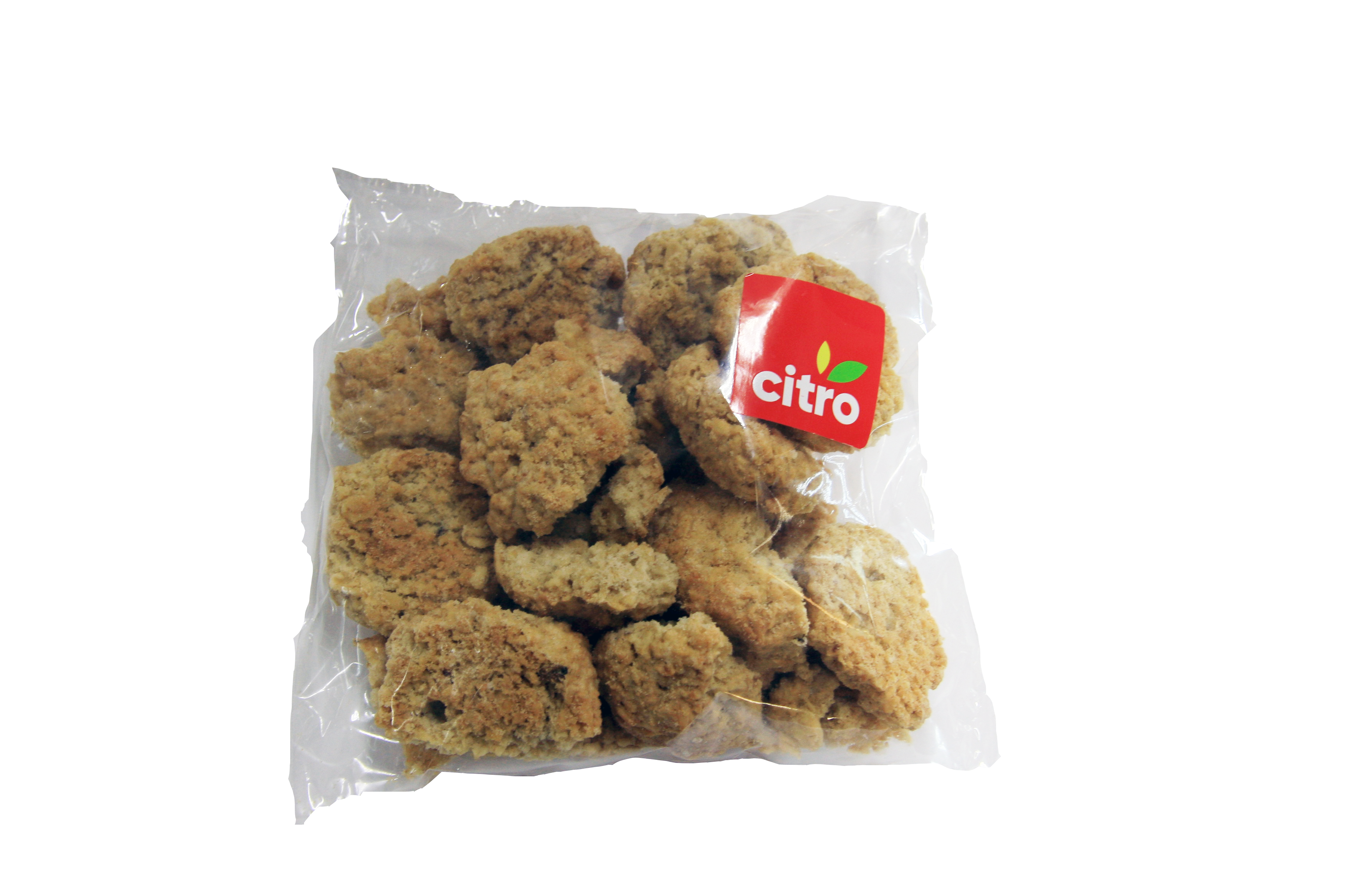 Sastāvs:Auzu pārslas;MARGARĪNS,cukurs;OLAS. 100g produkta satur:enerģ.vērtība 2044kj/489kcal, tauki 25g, piesātinātās taukskābes 7g, ogļhidrāti 52.5g,cukurs 21g, šķiedrvielas 6g,olbaltumvielas 9.9g,sāls 0.2g.Fasēts:A/S Diāna, Durbes iela 38/40,Ventspils