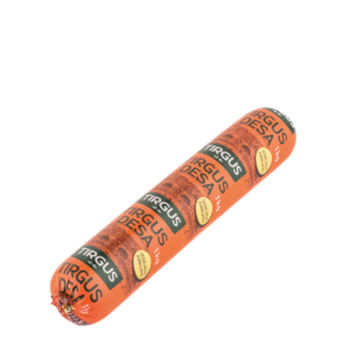 Ūdens, mehāniski atdalīta cāļa gaļa 29%, cūku ādas, ciete, jodēts sāls, SOJAS olbaltumvielas, stabilizētāji: E339, E407, E425i, E450, E451, E452, E1422; glikoze, aromatizētāji (satur rauga ekstraktu, kūpināšanas aromatizētāju, SINEPES, SELERIJAS, PIENU), antioksidanti: E300, E301, E316; garšas pastiprinātāji: E621, E627, E631; pārtikas krāsvielas: E120, E150, E150c; biezinātāji: E407, E407a, E410, E412, E415, E417, E425; recinātājs E508, augu valsts šķiedrvielas (SOJA, ceļtekas), cūkgaļa, liellopa gaļa, cāļa gaļa, cūku tauki, garšvielu ekstrakti (satur SELERIJAS), garšvielas (satur SINEPES), tapiokas ciete, sūkalu olbaltumvielas (satur PIENU), OLAS, Edam SIERS, SIERA pulveris, cukurs, rauga ekstrakts, garšaugi, skābuma regulētāji: E262, E330, E326, E575; hidrolizētas augu valsts olbaltumvielas, augu ekstrakts, cūkgaļas un cāļa olbaltumvielas, saulespuķu un rapšu eļļa, augu tauki, acerola-ķiršu pulveris, maltodekstrīns, KRĒJUMS, sīpoli, augu valsts šķiedrvielas, asinis, hemoglobīns, konservants E250. 100 g produkta vidēji satur: enerģētiskā vērtība: 497 kJ / 119 kcal, tauki: 6.9 g, tostarp piesātinātās taukskābes: 2.6 g, ogļhidrāti: 3.2 g, tostarp cukuri: 0,5 g, olbaltumvielas: 11 g, sāls: 1.7 g. Pēc atvēršanas izlietot 48 stundu laikā.