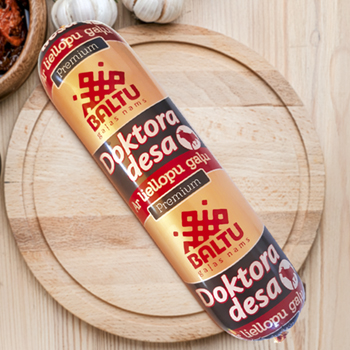 Sastāvdaļas: cūkgaļa, ūdens, mehāniski atdalīta vistas gaļa, cūkgaļas speķis, cūku ādas, liellopu gaļa 3%, sāls, PIENA pulveris 1,6%, emulgators E450, aromāta un garšas pastiprinātājs E621, antioksidanti E300, E301, garšvielas aromatizētāji, garšvielas ekstrakti, cūkgaļas proteīni, skābuma regulētāji E262, E327, E331, glikozes sīrups, biezinātājs E425, dekstroze, karmīna krāsviela, konservants E250. Desas apvalks nav ēdams. Enerģētiskā un uzturvērtība 100g produkta: 965kJ/231kcal, tauki 20,5g, no tiem piesātinātās taukskābes 8g, ogļhidrāti 1,4g, no tiem cukurs 1,3g, olbaltumvielas 10,3g, sāls 2,3g. Izcelsmes vieta ES. Uzglabāšanas nosacījumi: 0 +6C.
