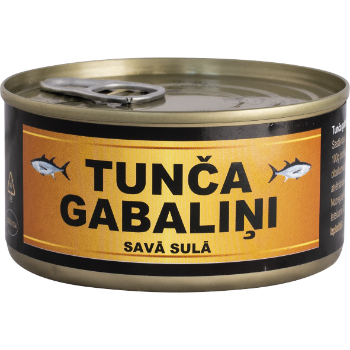 Konservi tuncis svītrains gabalos savā sulā 185/130g