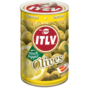 ūdens, zaļās olīves, citronu pasta 6% (ūdens, citroni 25%, biezinātājs nātrija algināts), garšas pastiprinātājs: mononātrija glutamāts, sāls, skābuma regulētāji – citronskābe un PIENSKĀBE, antioksidants – askorbīnskābe.