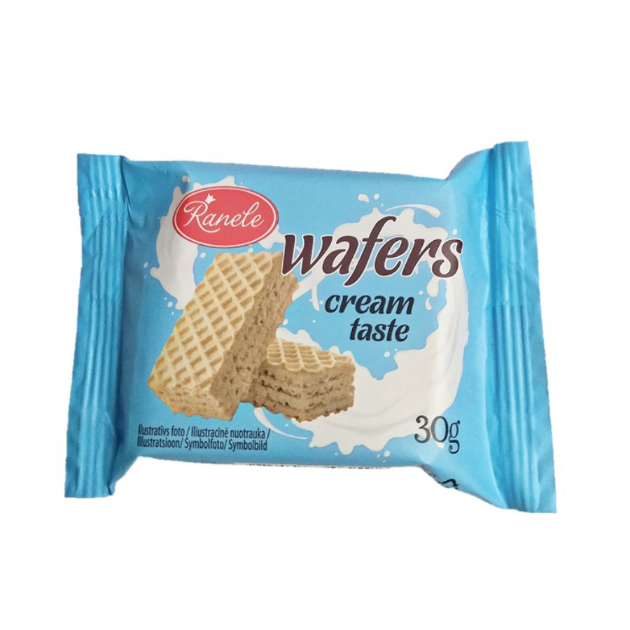 Sastāvs: KVIEŠU milti, cukurs, augu eļļas un tauki (palmu eļļa, palmu kodolu eļļa, šī sviests), SŪKALU pulveris, KVIEŠU ciete, rapšu eļļa, OLU pulveris, emulgators: SOJAS lecitīni; sāls, irdinātājs: nātrija karbonāti; aromatizētājs vaniļas- krējuma. Var saturēt SEZAMA SĒKLU, SINEPJU, ZEMESRIEKSTU un RIEKSTU daļiņas. Uzglabāt sausā un vēsā vietā. 100g produkta uzturvērtība: enerģētiskā vērtība 2161 kJ/ 516 kcal, tauki 26,8g, tostarp piesātinātās taukskābes 16,1g, ogļhidrāti 64,1g, tostarp cukuri 36,8g, olbaltumvielas 4,7g, sāls 0,3g.